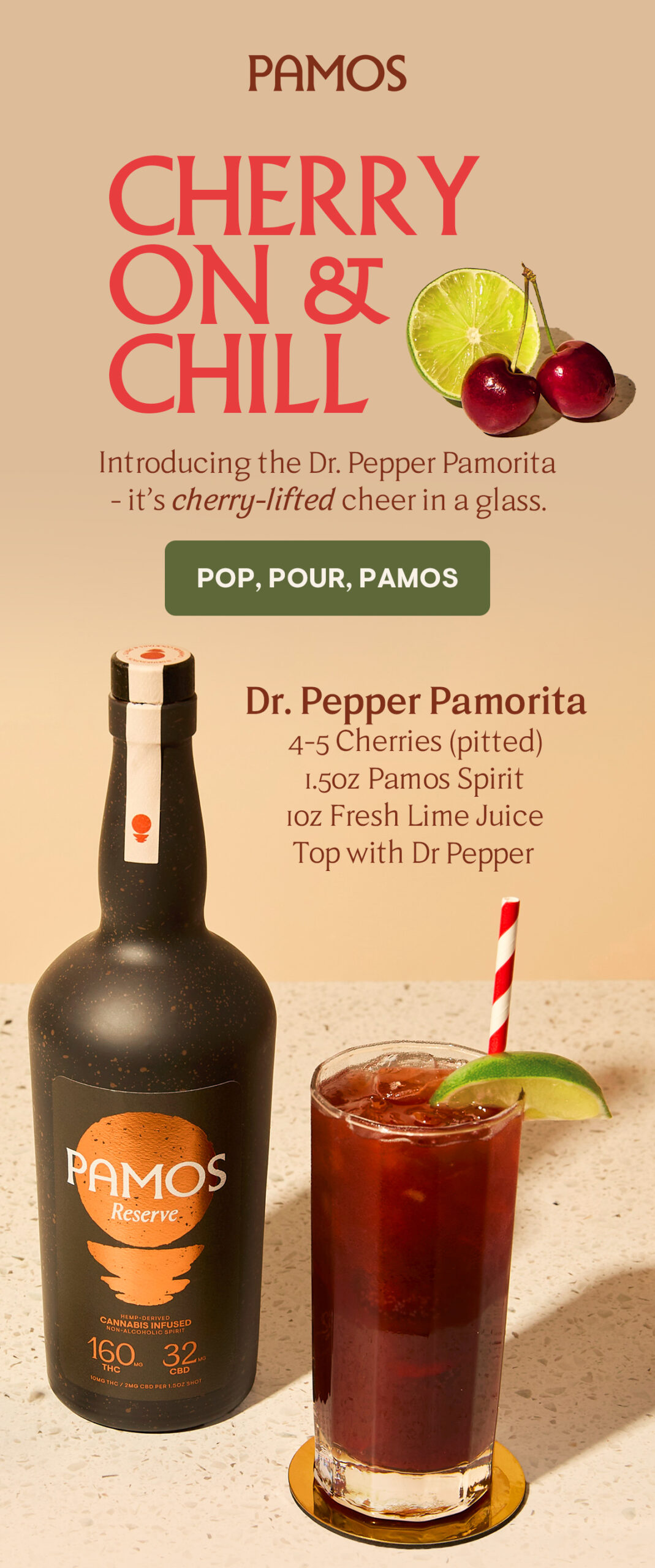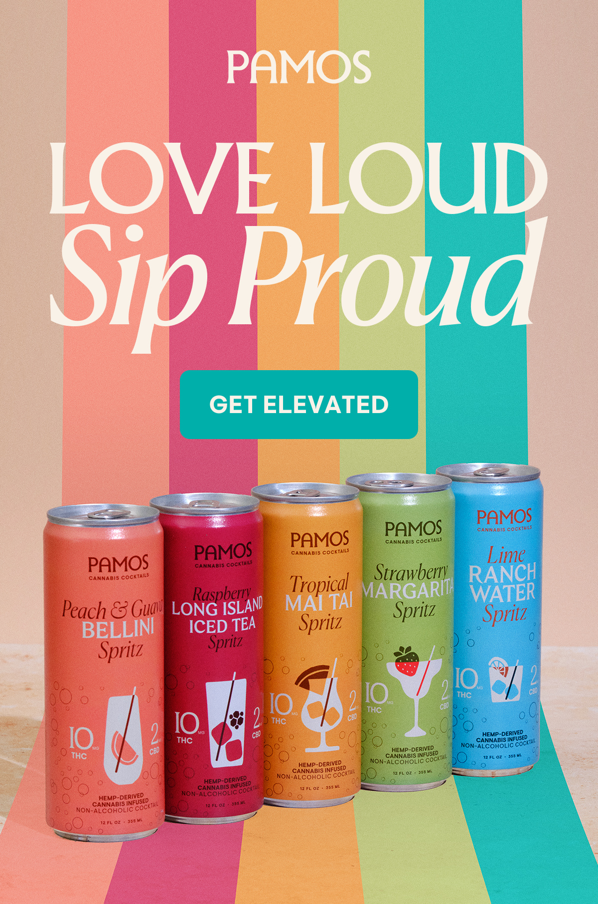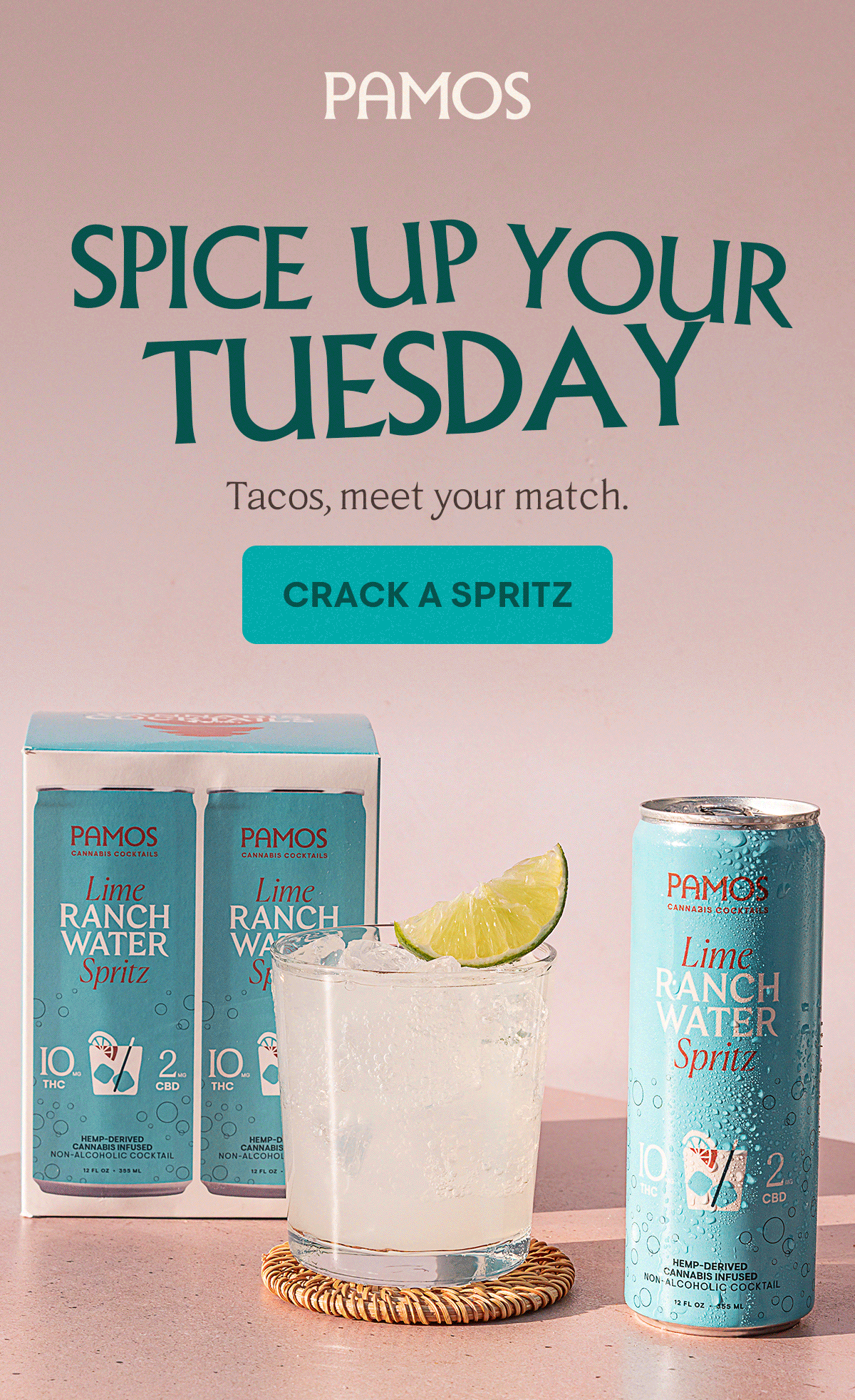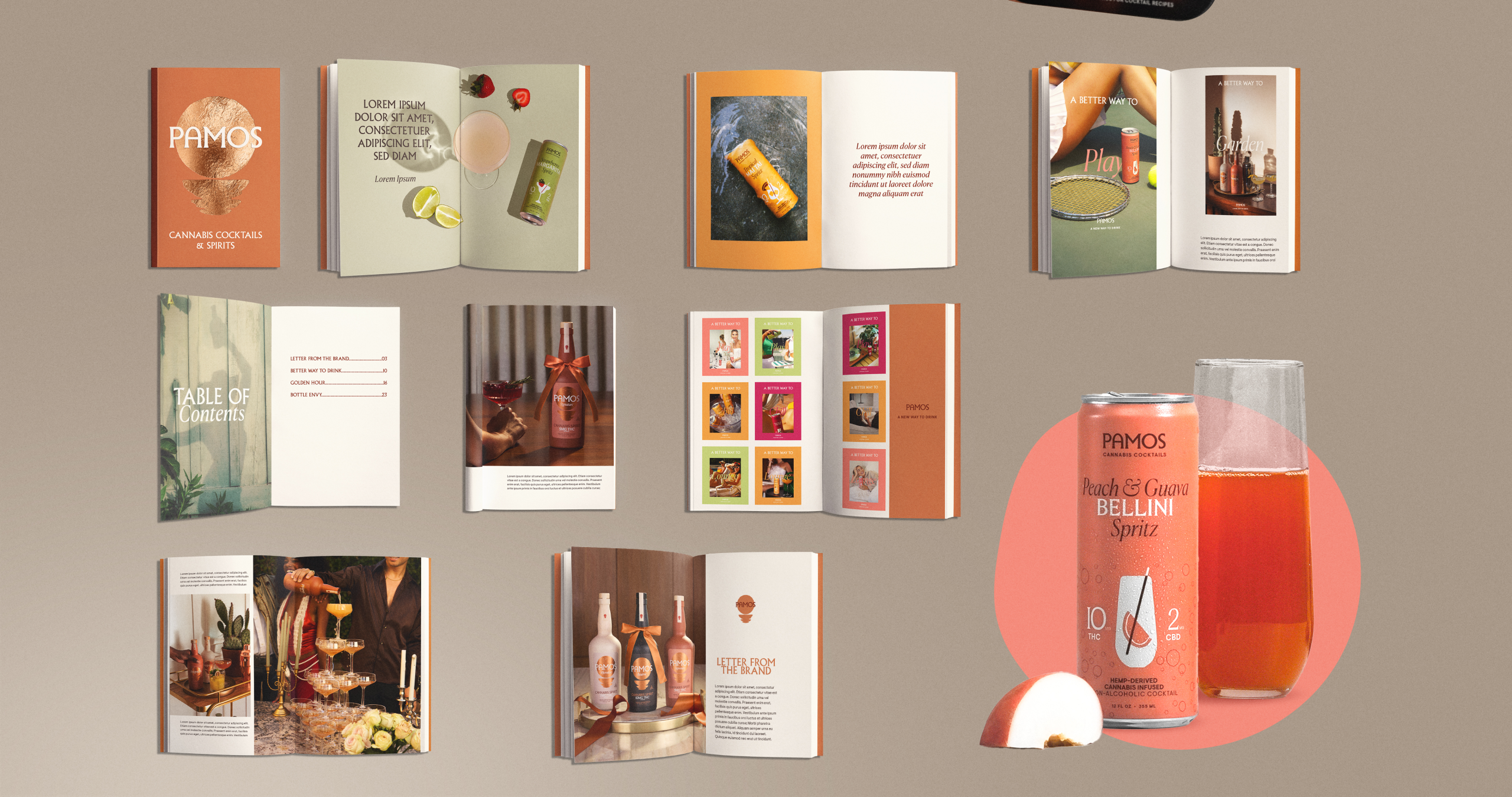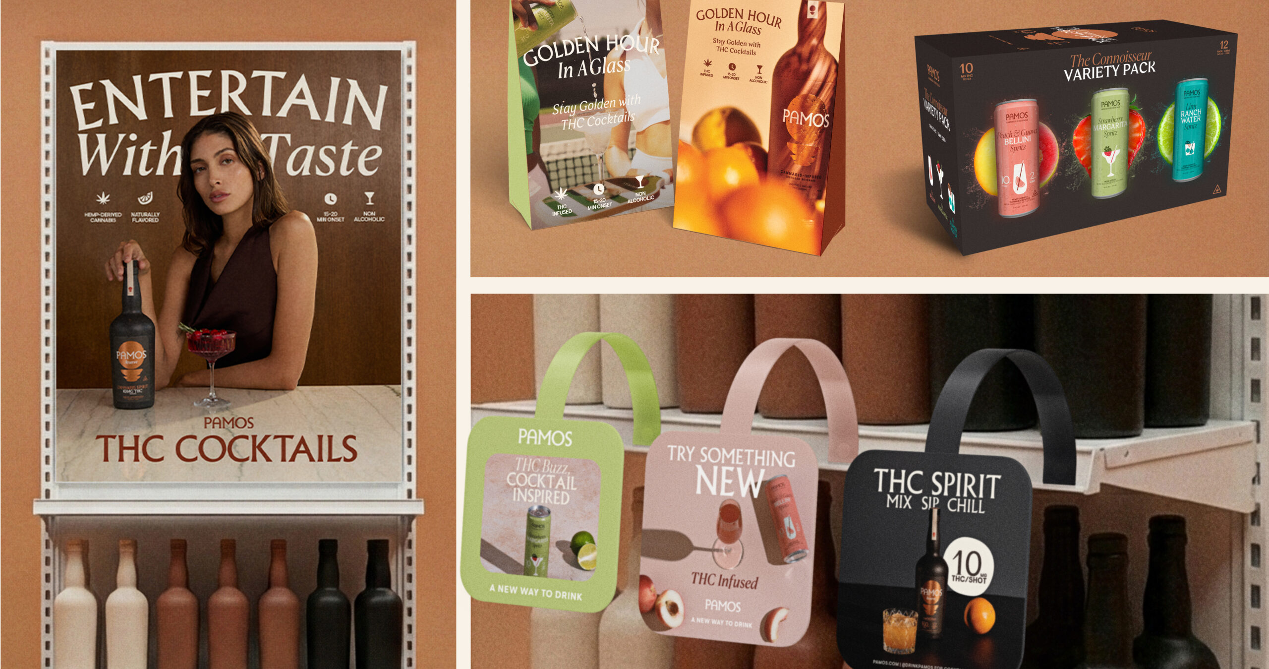 Pamos is a premium, hemp-derived cannabis cocktail and spirit lifestyle brand built around modern social drinking. The brand blends familiar cocktail rituals with cannabis-forward products, positioning itself at the intersection of beverage, culture, and lifestyle. My work with Pamos was a long-running partnership spanning multiple campaigns and launches, collaborating closely with the Creative Director and marketing team to shape campaign creative and support the brand across art direction, production, and execution as the visual system evolved.