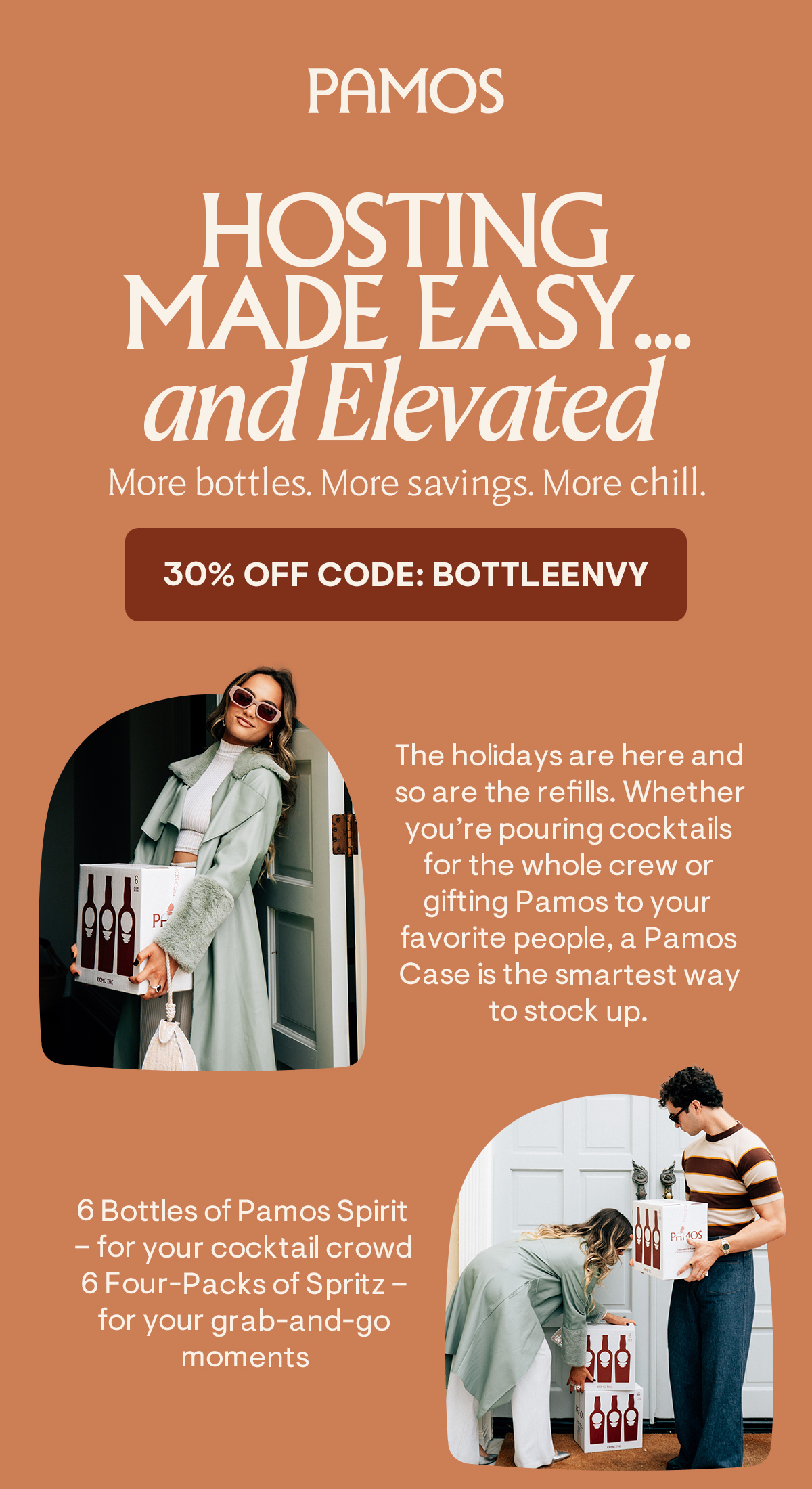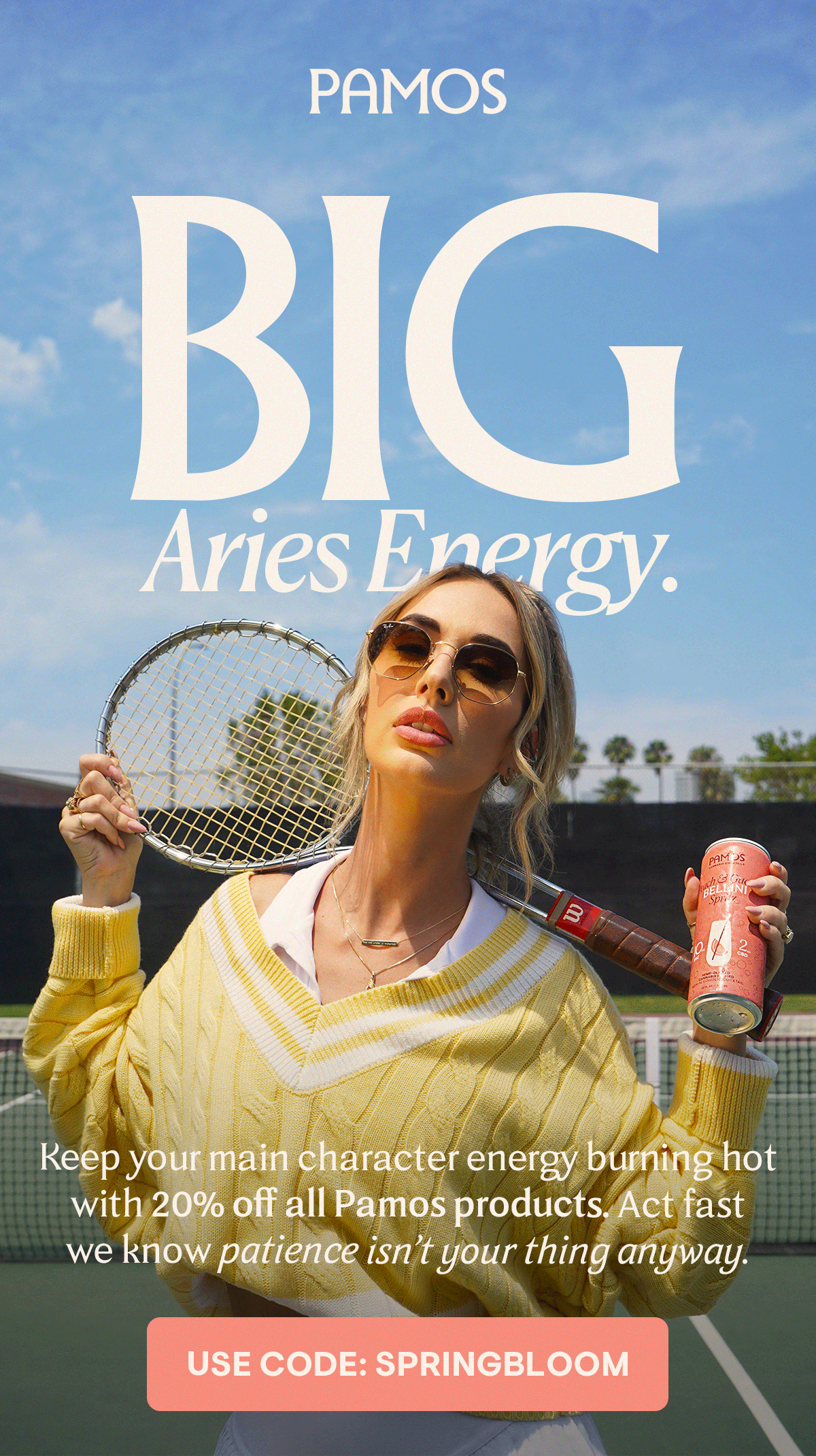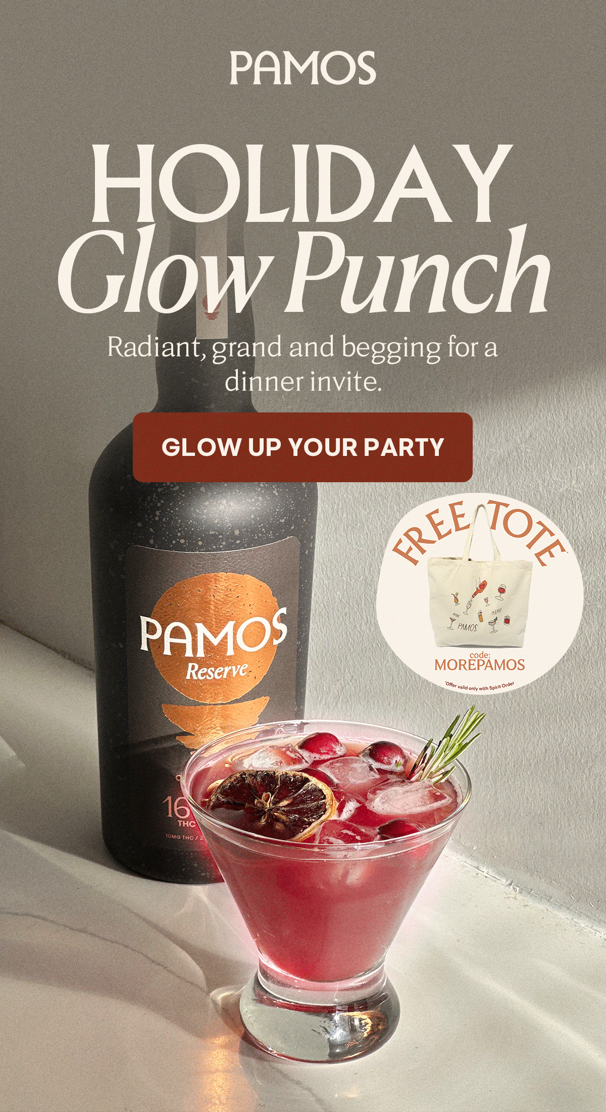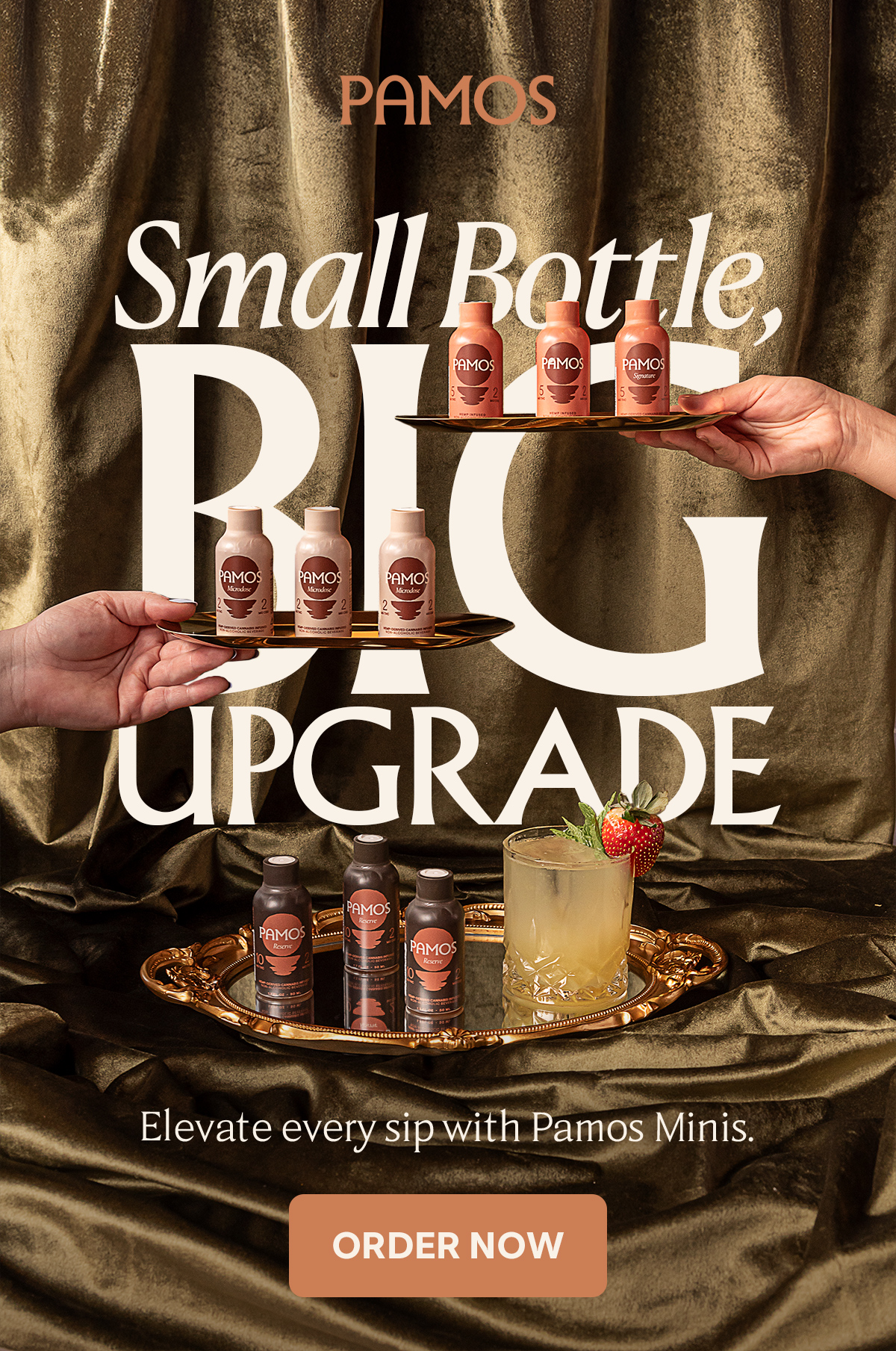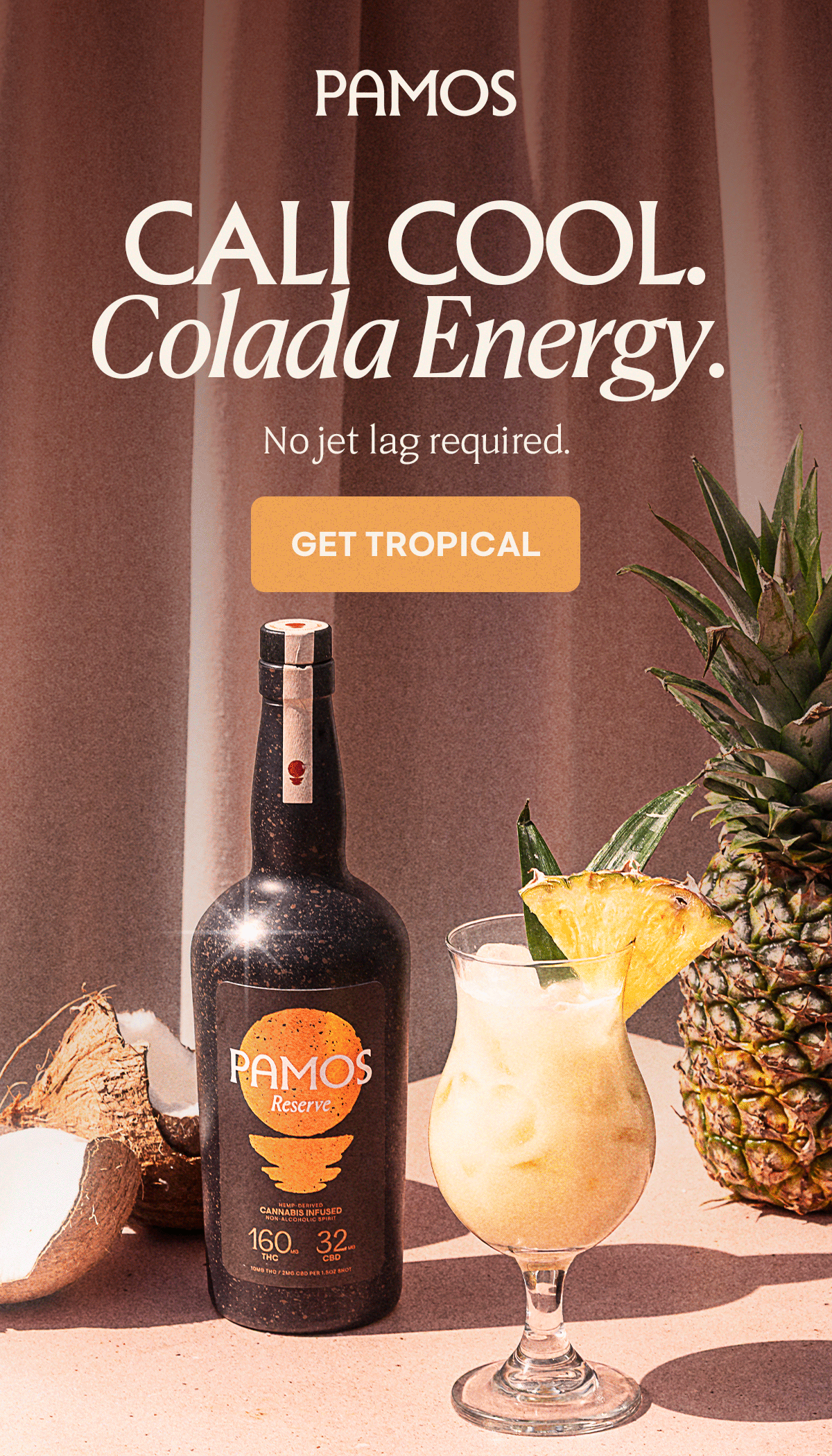 Pamos is a premium, hemp-derived cannabis cocktail and spirit lifestyle brand built around modern social drinking. The brand blends familiar cocktail rituals with cannabis-forward products, positioning itself at the intersection of beverage, culture, and lifestyle. My work with Pamos was a long-running partnership spanning multiple campaigns and launches, collaborating closely with the Creative Director and marketing team to shape campaign creative and support the brand across art direction, production, and execution as the visual system evolved.